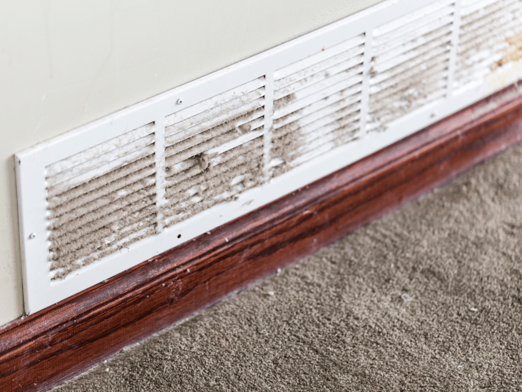 - Dirt, debris, or matted dust underneath a vent cover